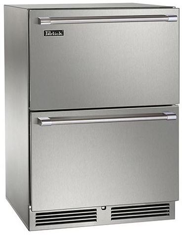 Rated for both food and beverage storage, Perlick's 24" Signature Series Refrigerator brings the luxury of undercounter refrigeration to any room of the home. Available in both door and drawer models, these units boast 5.2 cubic feet of storage space. Door models come standard with two (2) black vinyl-coated full-extension pull-out shelves, making it easy to stock and retrieve items. Drawer models are tough enough to stand up to 200 lbs. of weight, and are deep enough to accommodate milk gallons and Corona bottles. Enjoy precise temperature control thanks to Perlick's exclusive Variable Speed Compressor and RAPIDcool™ forced-air refrigeration.