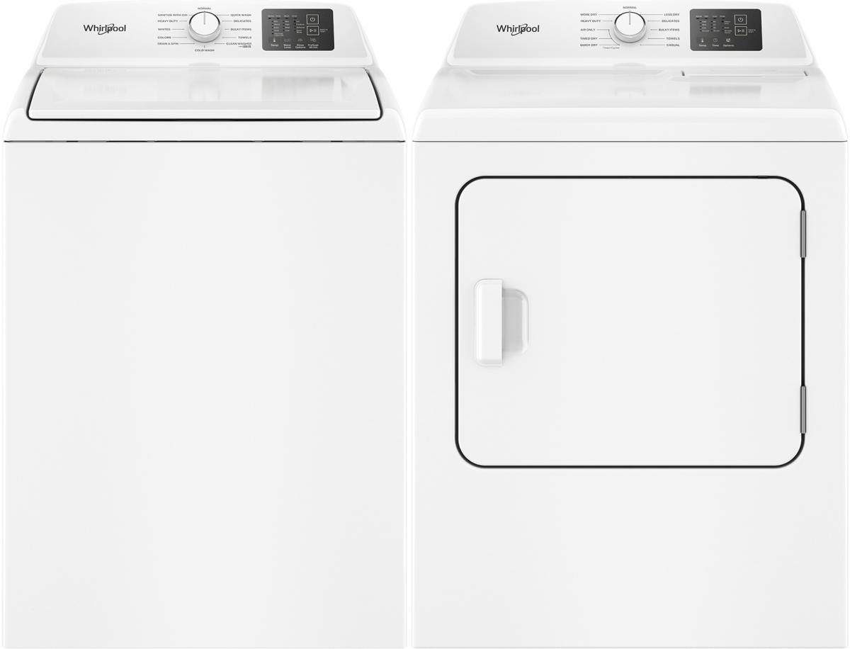 Whirlpool® White Agitator Top Load Washer and Electric Dryer Laundry Pair with 4 Cu. Ft. White Agitator Top Load Washer with Quick Wash and 7 Cu. Ft. White Electric Dryer with Adaptive Dry.Read More